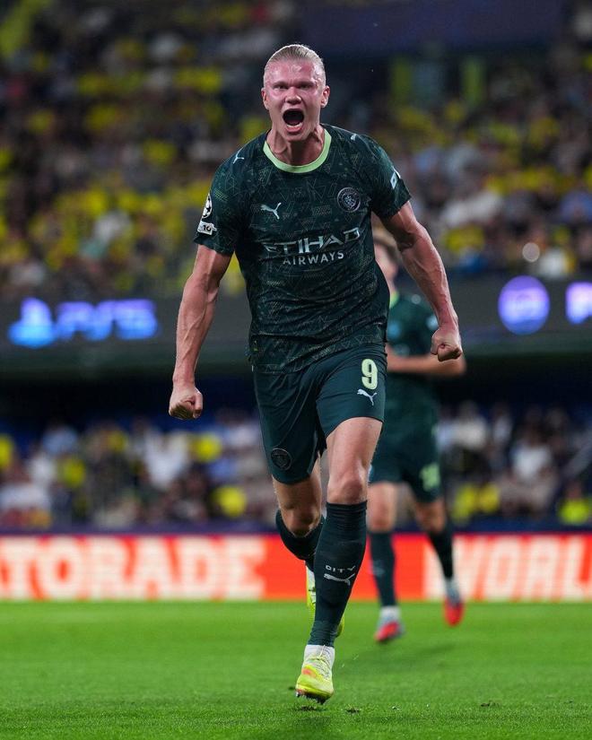 上半场第34分钟,哈兰德在禁区内完成标志性的背身转身射门,皮球直挂死角,曼城1-0领先。